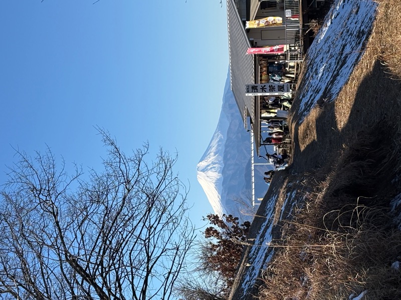 額縁は冬の枯枝ロープでも 輝き変わらぬ富士を横目に