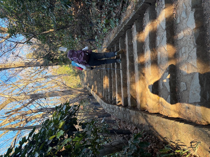 山頂へ頑張りどころの階段で カメラ構えて一息いれる