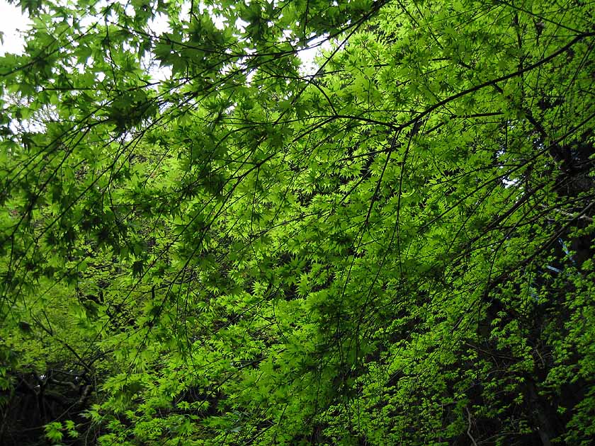 街道のヌシのような存在だったカエデの巨木ですが、説明文をまじめに読んでいませんでした。ともかくカエデ類の新緑はきれいです。秋はさらに楽しみですが。