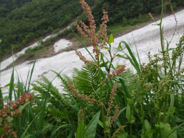 【23】ミヤマハナシノブ……この花を見るために、わざわざ大樺沢を二股まで上がりました。今年は雪が多かったようで、花は群落にまでならず、点在する状態でした。しかしみごとに咲いた株がいくつもあって、長いミヤマハナシノブ休憩をとりました。花に群がっている昆虫たちは、カメラを近づけても微動だにしませんでした。