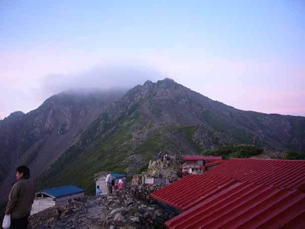 【07】農鳥小屋から見る夜明け前、小屋のあのおやじさんいわく「今朝の朝日はきれいじゃないな」毎日見てると違いがわかるんでしょう。わたしには十分きれいでした。
