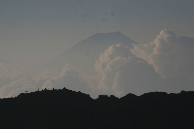 頂上に人影、大向こうは富士山。私も撮ってみましたが、なかなかうまく撮れないんです、富士山。