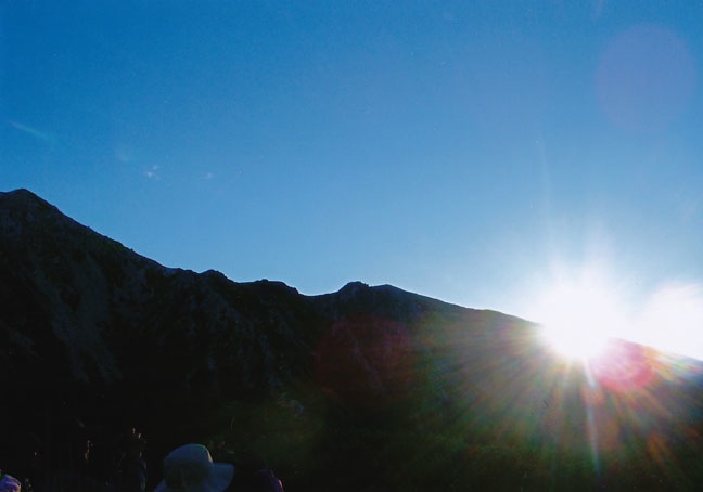 【64】鷲羽岳の稜線から太陽が顔を出した瞬間。小さく光り輝く。