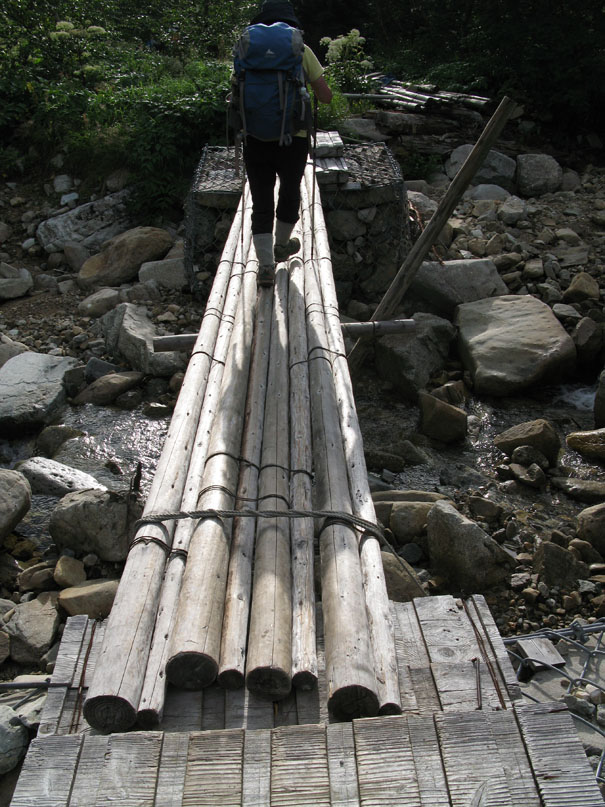 今回の旅のシンボルは「雲ノ平」。その「平」の上で雲が(幸いなことに)軽やかに踊っていた。今日はこれから黒部源流の谷へと下り、あそこまで登り返すのだが、ヒマラヤなどではこれが何倍にもスケールアップするのだろう。箱庭ジャパンの秘境ゆえに、昼頃には軽くあちら側にたどり着けている予定。