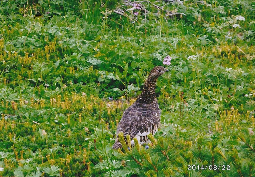 最近のポケットカメラはレンズがすごくよくなったと思います。このライチョウはかなりの望遠でとっているはず。それがポケットに入ってしまうのですから。最近では高感度撮影でも能力が大幅アップして、手持ち撮影でのブレも緩和されています。山歩きのカメラでは、こういう望遠機能のおかげで、登山道から撮れるものが驚くほど多くなりました。この写真はまちがいなく「カメラのおかげ」です。