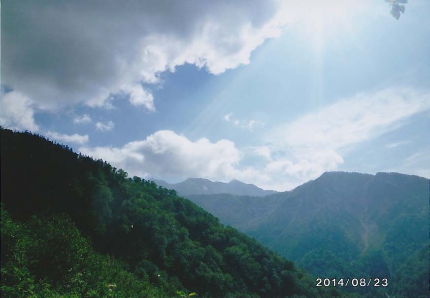 【04】8月23日11時46分撮影 残念ながら少しボケてしまっています。旅の終り、新穂高温泉バス停あたり。もう足はパンパン、よくもまあ登れた事。己を知らないことは時には吉とでる。