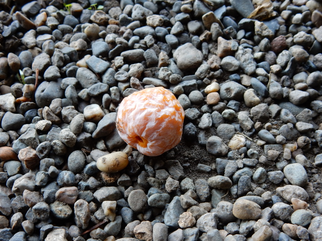【27】今、落ちたばかりなのかしら、ぎんなんが一つぽつんと砂利の上に。