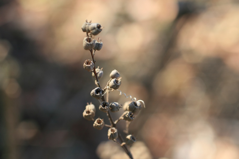 【24】なんだろう、これは。実のような種のような。小さな穴からアンテナを立てて、何かに気づいてもらいたいのか、何かを待っているのか。うっかりすると枯れ枝にまぎれてしまって、その存在に気がつけない。けれどきっと、そんないろいろには理由があってそうなっている。