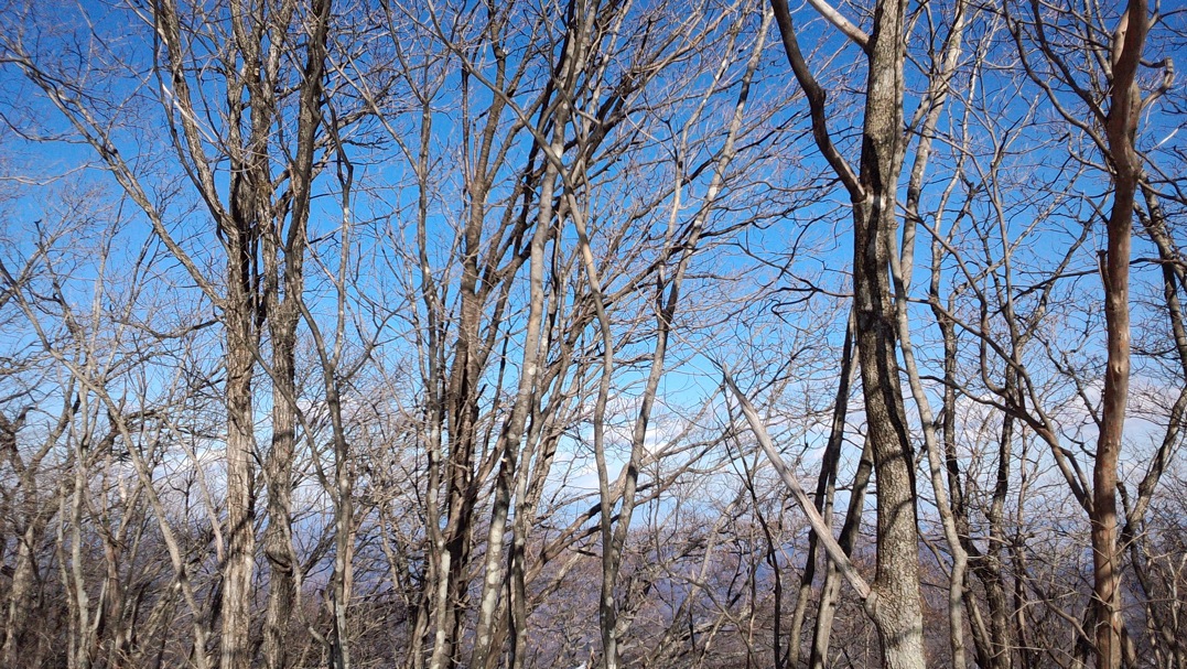冬の山歩きは基本的に暖かいのです。鞍部や稜線に出るまでは、意外と風がないのが普通です。そして太平洋岸では晴れの日が多いので、太陽の暖かい光がそそいでいます。日だまりハイクの至福の瞬間といえます。