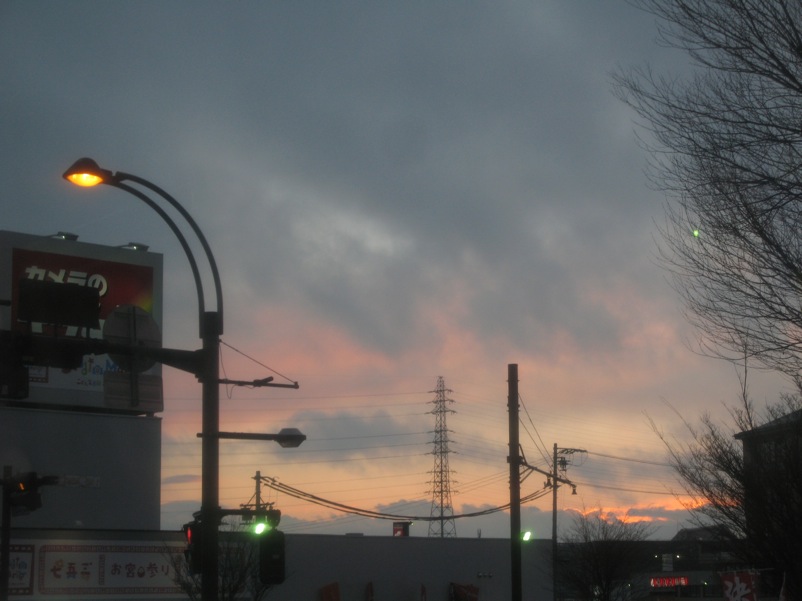 バスは17時30分が佐久平駅。その直前、駅前のビル街に入ったあたりで夕焼けらしい風景が見えました。すぐに夜のとばりに包まれてしまいましたが。