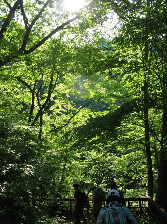 この圧倒的なカエデの緑。明治時代に日本有数の高級別荘地帯だったときに、中山道沿いの紅葉の名所だったようです。横川から人力車も上がったという古い資料が金湯館にあります。