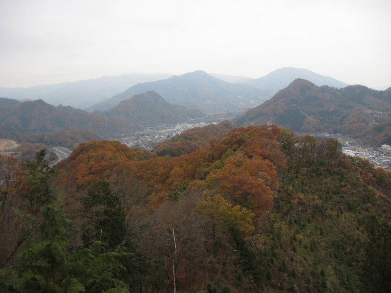 突然、山が見えました。この瞬間、この山が何なのか分かりませんでしたが、扇山(1,138m)。手前の、頭が丸い山は標高644mの菊花山。大月市街から馬立山〜九鬼山稜線へと一気に登る足がかりの山のようです。高川山から大月への長い縦走ではこの山が終始目標になりました。