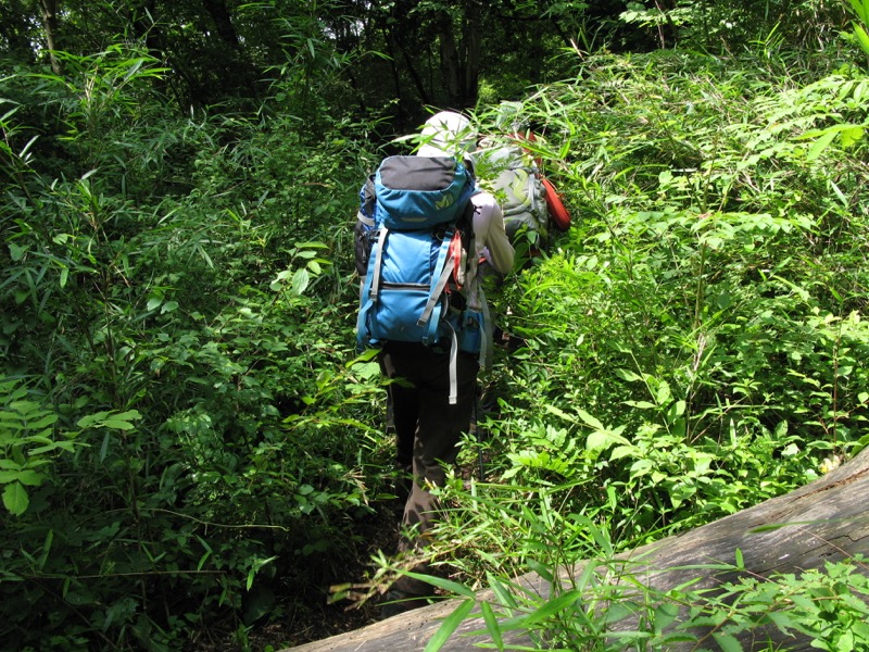 気分としては雪山の樹林帯。冬の北八ヶ岳などではこういう気分の縦走を楽しめます。