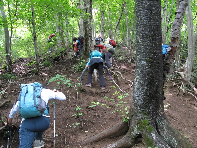 シラノサワ・コースの道は、大きく回り込んでから急登になります。