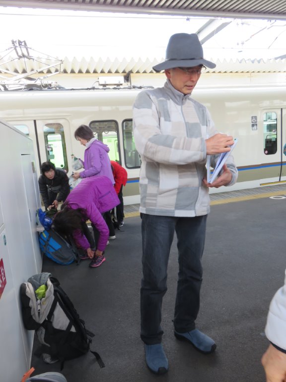 足先から帽子まで ご覧あれ。いつもの山行とは 違ったタウン風テイストのお洒落な我等がリーダー。