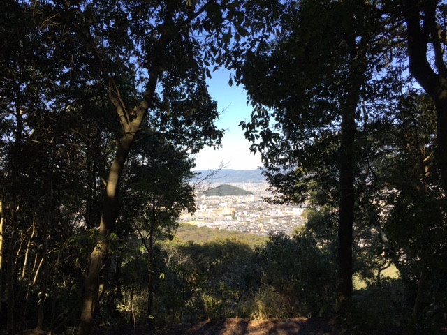 この写真は大和三山3つめの天香具山に登り始めたところです。見えているのは耳成山です。