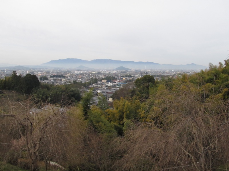 黄色くみえるのは菜の花です。その先に天理の町がボヤーとみえました。