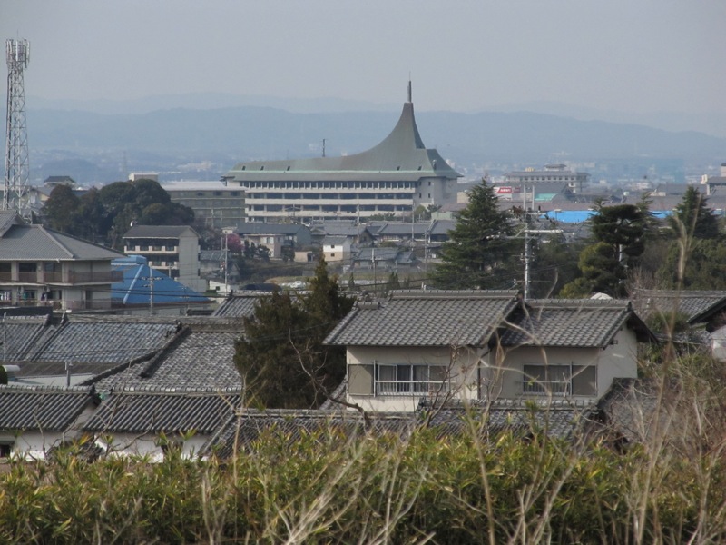 石上神社からいよいよ天理駅へと向かいました。アーケード商店街の周辺に天理教の巨大な施設が点在していました。天理駅はもちろんのこと、天理市という名前までが江戸時代末期に成立したこの宗教団体の名前をとっていて、新興宗教教団の名前をとった唯一の例だそうです。これは協会本部。