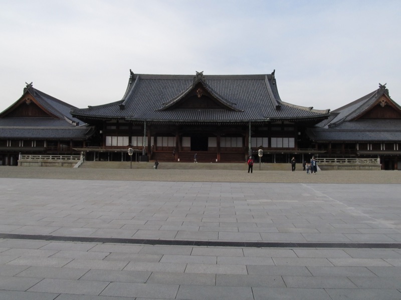 天理教の本殿。左からくる自転車で本殿前の広場の空間的大きさが分かると思う。
