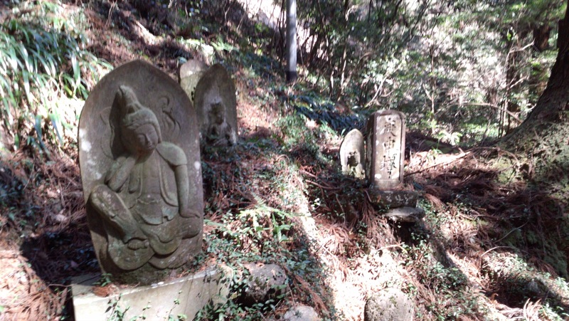 起点の行道山浄因寺は「関東高野山」と呼ばれる名刹。行道山はその寺の山号なのですが、登ったところにある標高442mの無名峰を行道山と総称するという説をここではとっておきます。そこにはたぶん石尊山という名があるだろうと思いますが、谷をはさんで北西に標高486mの石尊山がありますから、そこは石尊山の展望台というのが穏当な解釈でしょう。