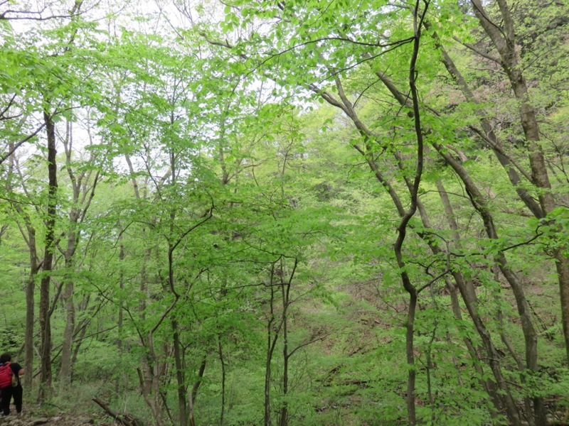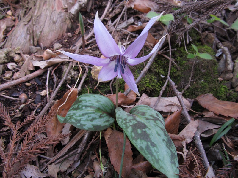 糸の会No.203の山行で初めて笠山を訪れました。たまたま見たガイドブックに「シュンラン、カタクリ、ヤブレガサが群落をなしている」と書かれていたのがきっかけです。この夏には雲ノ平、槍ヶ岳、北岳〜塩見岳、など大物を予定している年でしたから、あまり大きな期待をせずに、出かけたのです。