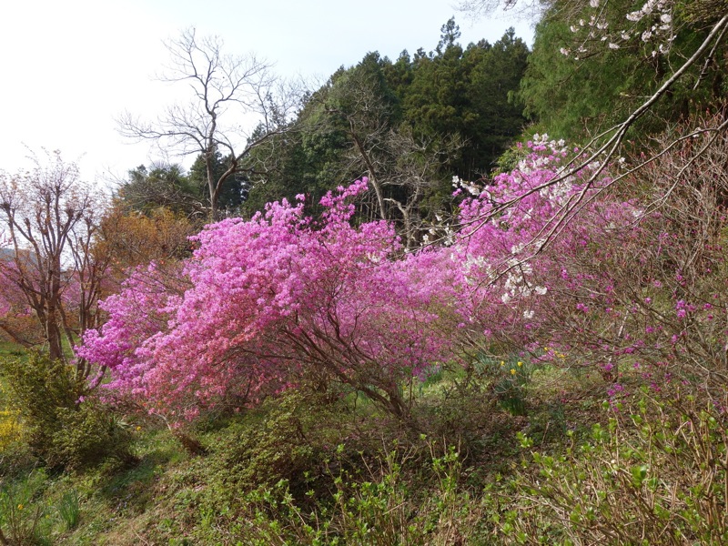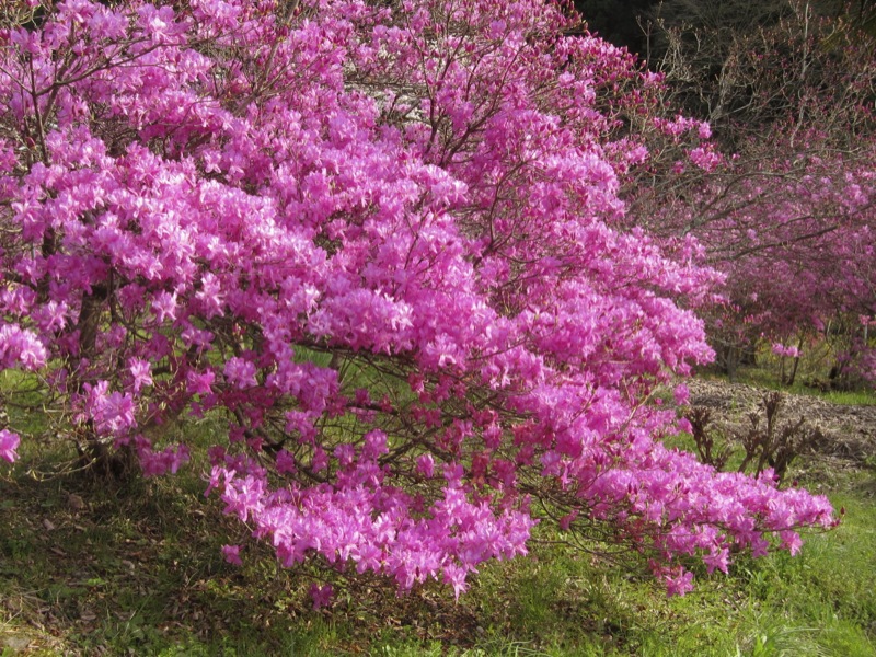 これは何ツツジ……なんでしょうか。じつは図鑑類をいろいろ調べてみたのですが、この写真ではもちろんよくわかりません。でもこの花はムラサキツツジ……のようなのです。まさにここ、埼玉県秩父郡東秩父村の「村の花」ですから。でも「ミツバツツジ」といってもなんの問題もないようです。