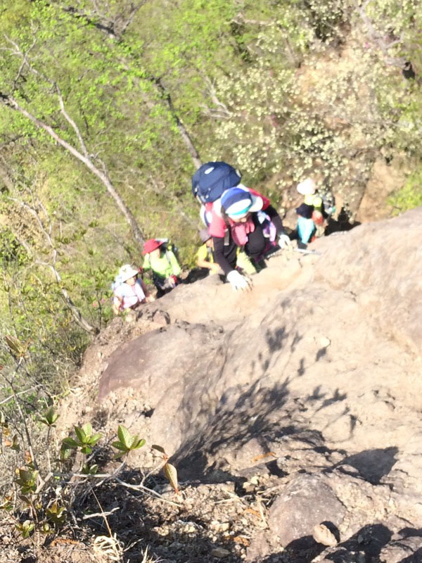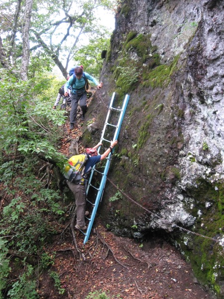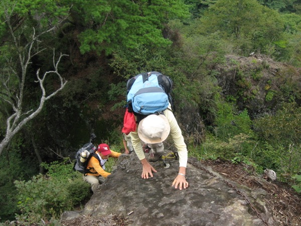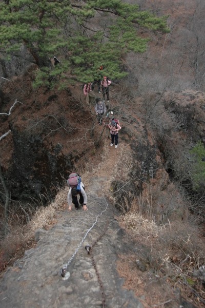 *でした……というのは、この山が今、転落事故の多発する危険な山になってしまったらしいのです。私たちが登ったすぐあとでも、死亡事故が起きています。どうしてなのか具体的なことはわかりませんが、「スリリングだけど危険は少ない」ということは、クサリによって安全は確保されているけれど、環境はきわめて危険、という意味です。クサリを安全に利用できなければ、危険度は一気に上がります。