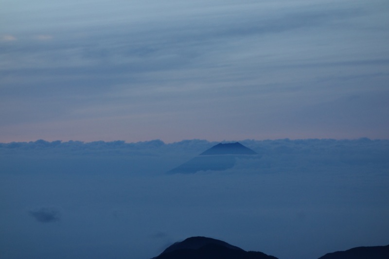 まだ朝の気配が残った雲海の様子。富士山もうっすらと見えます。