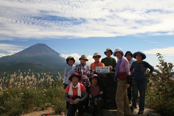 *糸の会としてはNo.184になりますが、第3火曜日の「d」シリーズが2年目に入ったところで「すごく軽〜い歩きですが、富士山の展望ということでは(天気によりますが)絶品です」というパノラマ台をデビューさせました。東急セミナーBEでの登山講座が1年で突如、本社(東急電鉄法務部)から「危険な講座」として取り潰しになって、受講生の救済措置として私が個人的に始めたのが糸の会なのですが、現場は承服できず、「登山」ではなく「ハイキング」として関東ふれあいの道のシリーズを再開したのが1年後の1996年10月で、1999年まで33回開催されました。これはその「第3火曜日」を再び糸の会で引き継いだシリーズで1999年8月から2012年まで130回続きます。その12回目ですから、中心メンバーは東急セミナー第2期のみなさんです。
