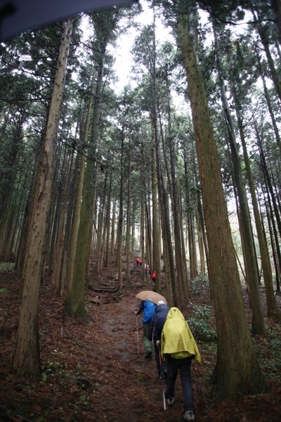 できれば「ダイヤモンド富士」を期待しつつ、高尾山への道を楽しもうという計画なのに、のっけから堂々たる雨。
