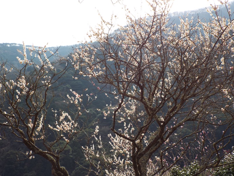 だんだんと全貌が現れてきた。ちょっとピークは過ぎた感じが否めないが、それでもこれだけの斜面に広がる梅林はなかなかだ。埼玉の越生の梅林は、風格のある古木がたくさんある観光梅林のほか、広い平地に梅栽培農家の整然と植えられた長閑な梅林が周囲をとり巻き、まったく趣が違う。