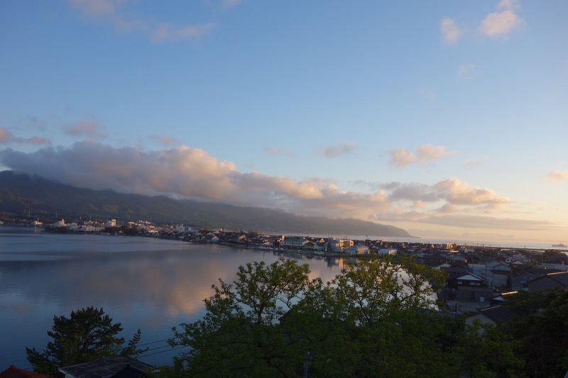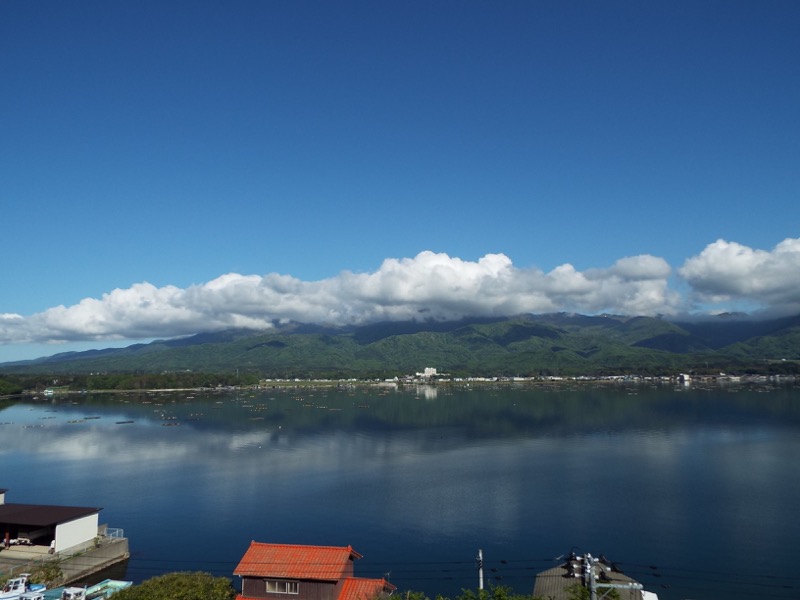 ジェットフォイルも晴れていると気持ちがいい。窓から見えている海沿いの山は弥彦山? 角田山? それとも米山?