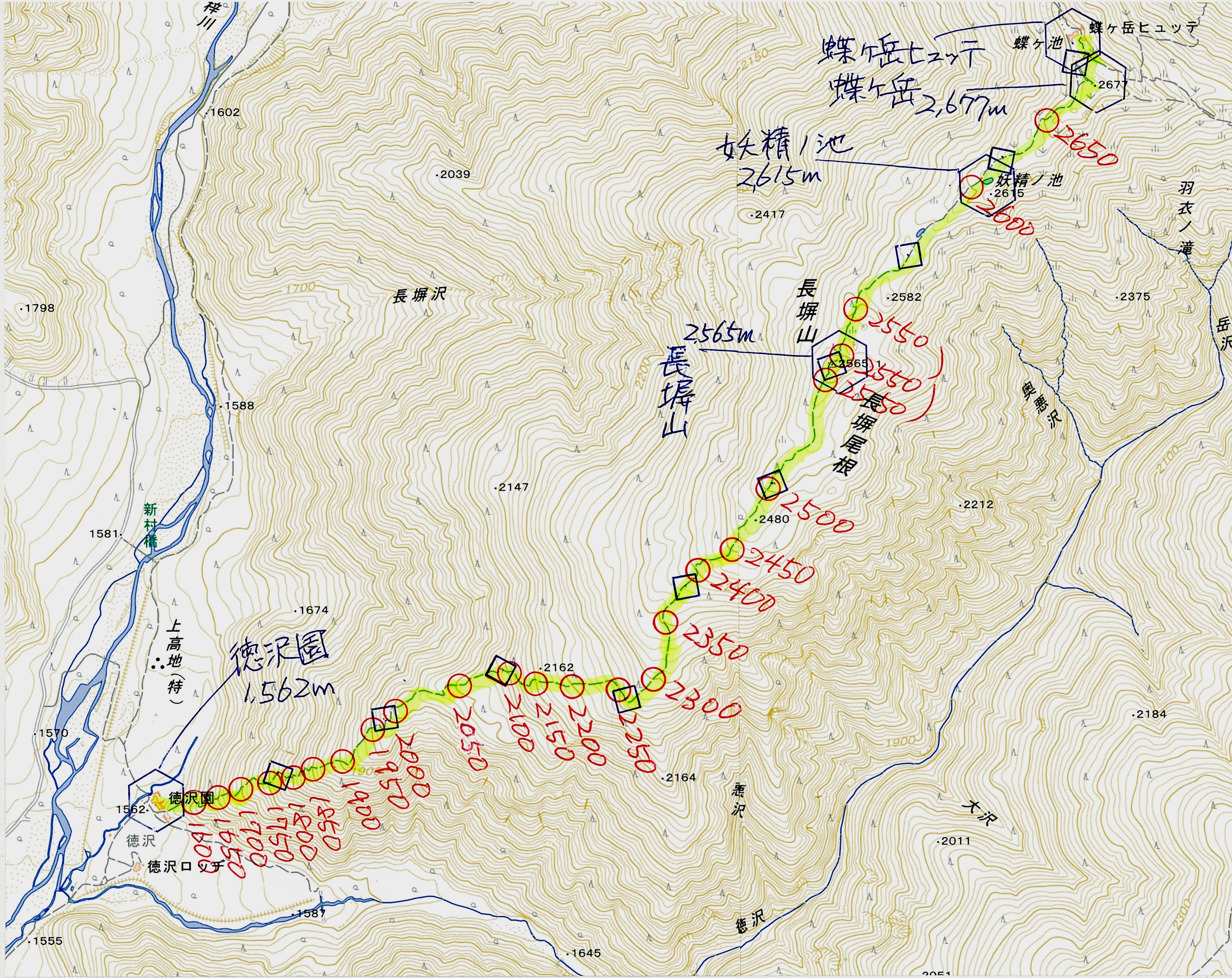 *標高差1,100mをゆっくり、ゆっくり登ればいいだけなのに、晴れていれば槍〜穂高のスペシャル観覧席となる蝶ヶ岳。最初の北アルプスとして、できれば初心者向けにやってみたいと思うようになったのですが、残念ながら完全なベテラン組になりましたね。そこで初日の足慣らし企画をなしにして、前泊で2日間の計画に単純化しました。私は夜行バスで21日(水)朝に徳澤園に向かいます。