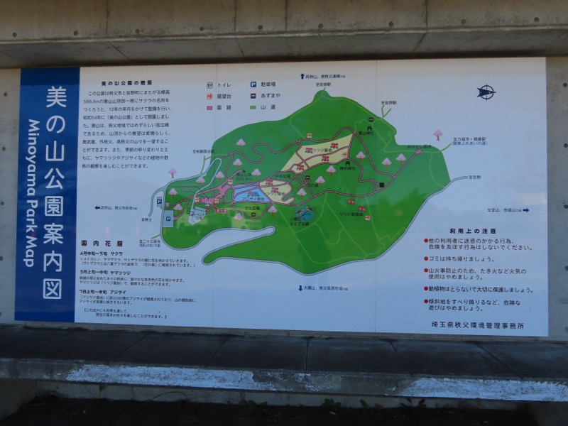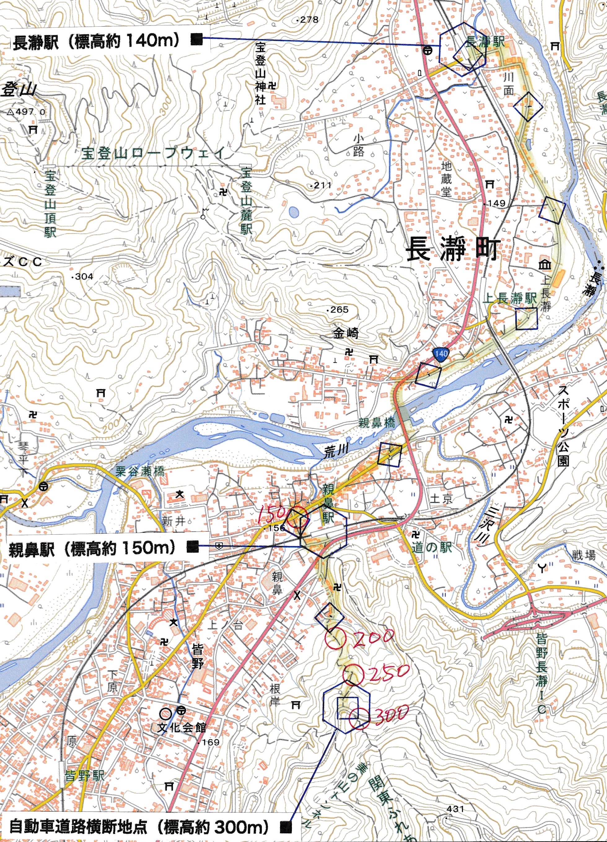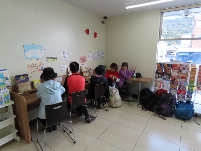 ────1355ごろ_関東ふれあいの道の舗装路が登山道に変わる(標高約500m) 1420ごろ_自動車道を横断。小休憩(標高約280m) 1440ごろ_秩父鉄道親鼻駅(標高約150m) ・長瀞駅まで歩く計画を変更して、次に来た電車で長瀞駅または皆野駅まで行き、そこで星音(せいね)の湯の無料送バスを待つことに決定。送迎バスは長瀞駅1530、皆野駅1540 ────1505ごろ_皆野駅に到着、ローソンのイートインスペースで時間待ち