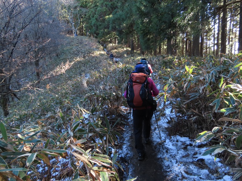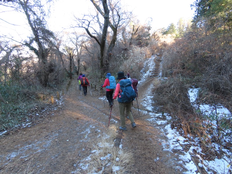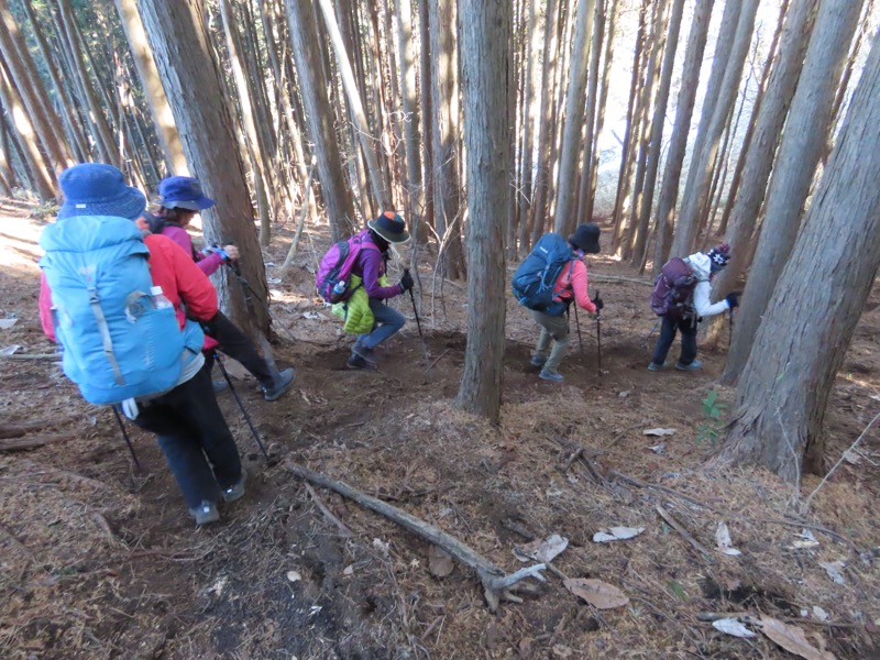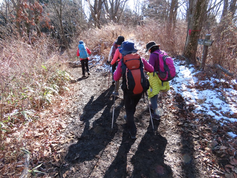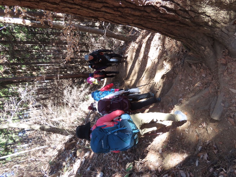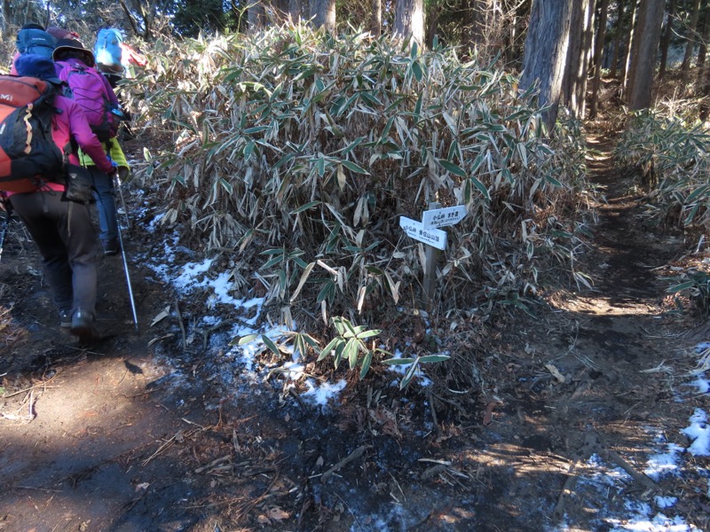 ────★計画書のJR時刻表が「平日」だったため「0808豊田始発1番線(大月行き普通列車)」が「0803豊田始発1番線(大月行き普通列車)→0811八王子4番線→0820高尾→0836上野原」となっていてリーダーが乗り遅れ「0845高尾始発→0902上野原」と20分ほどの遅れとなりました。 *0910ごろ_上野原駅でタクシー2台に分乗。一気に和田峠まで上がりました。 0950ごろ_和田峠を出発(標高約690m) ────1020-40ごろ_陣馬山(標高=855m)