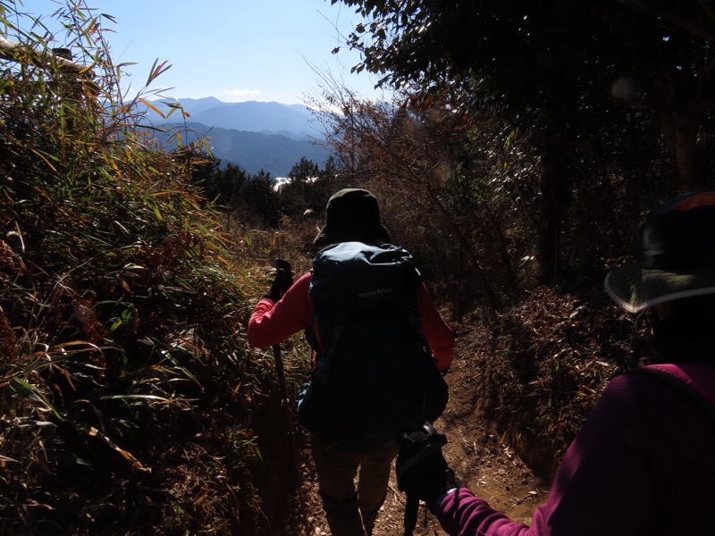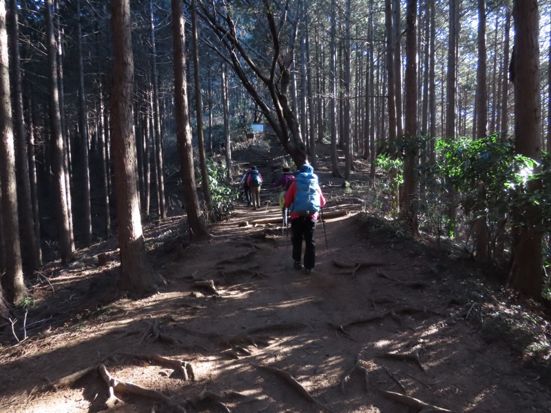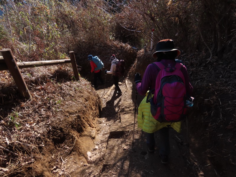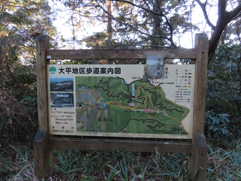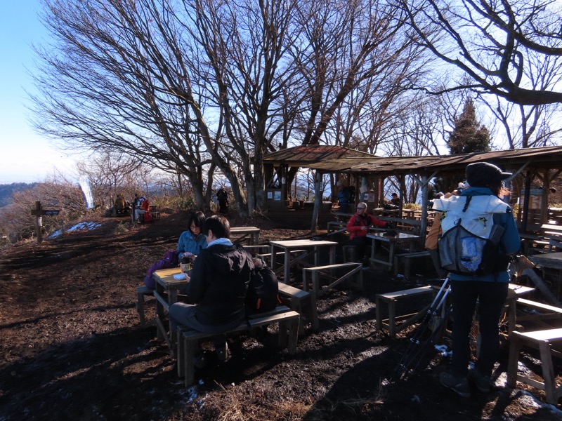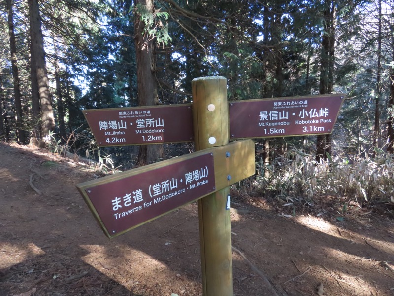 ────1135-1200ごろ_明王峠でトイレ休憩(標高約730m) 1220ごろ_堂所山登り口では巻き道を選択(標高約700m) ────1340-55ごろ_景信山(標高=727m)