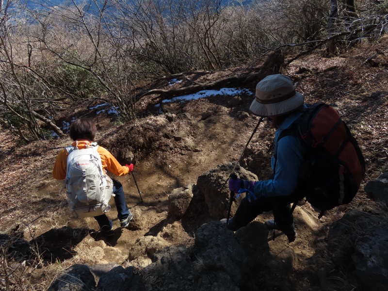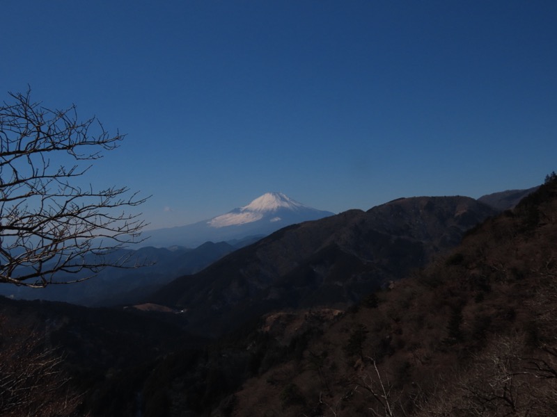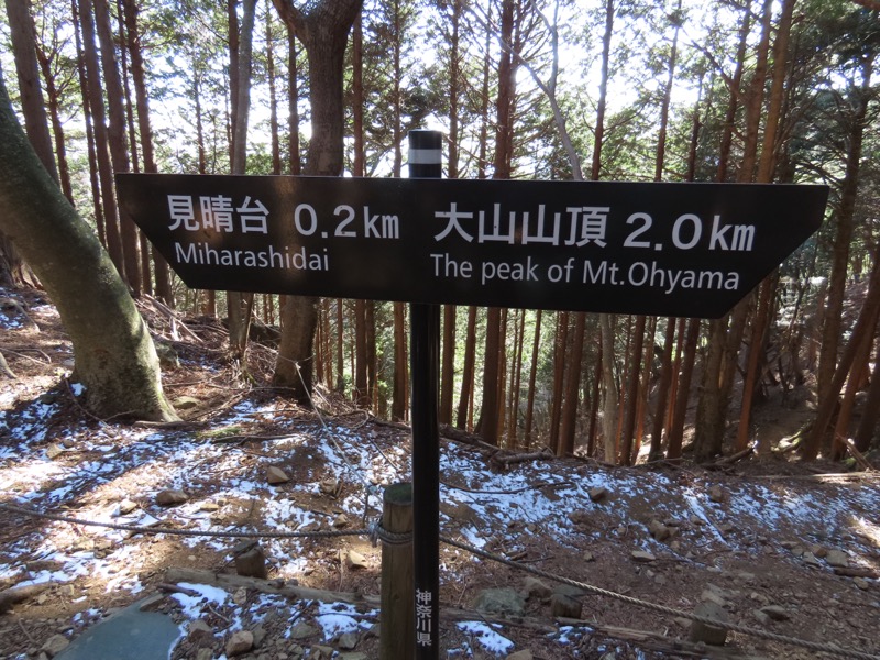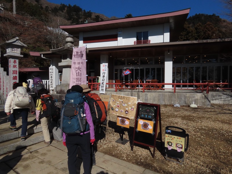 *丹沢の大山です。でもたしか、以前、「白山」という山も加えたことがあったかな、と思って計画を立ててみたのですが、日帰りとしては長大でした。けっきょく、2つ目の「白山」を自動車道路で巻いてしまうことで「冬の軽めの山と温泉」になりました。残念ながら元湯玉川館での日帰り入浴はかなわないので、七沢荘です。