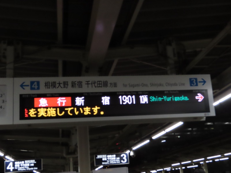 *小田急線快速特急小田原行き…0757新宿→0804代々木上原→0817登戸→0857伊勢原(下車)