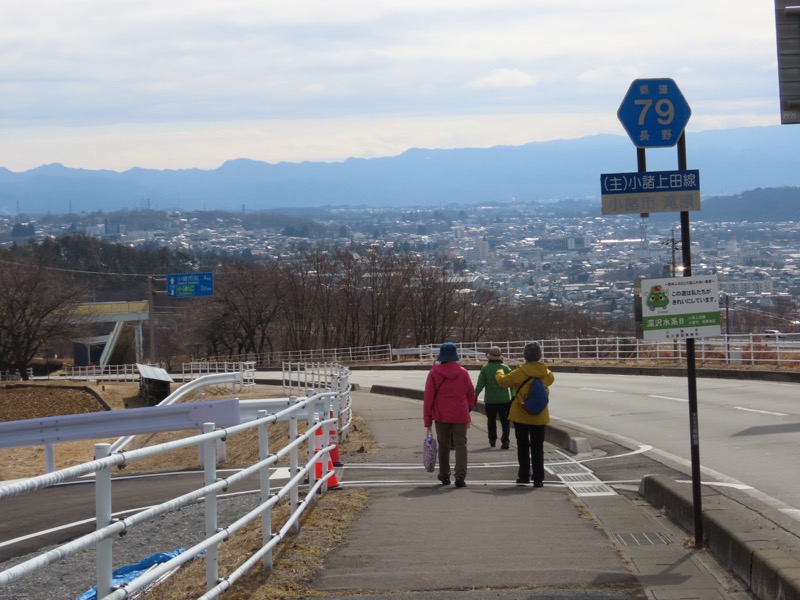 *バス終点の「高峰マウンテンリゾート」まで歩こうと思ったけれど、日陰の車道は凍っていて、引き換えす。