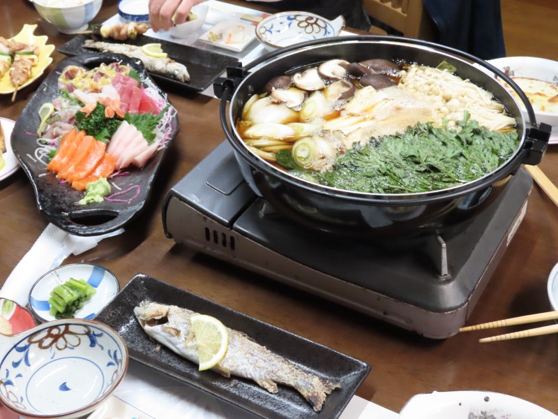 *宿の車に迎えてもらって、夕食