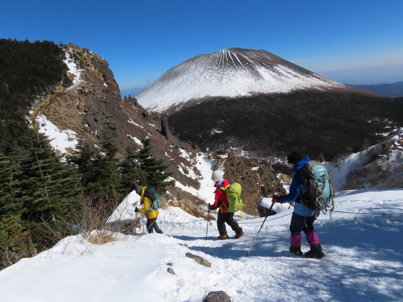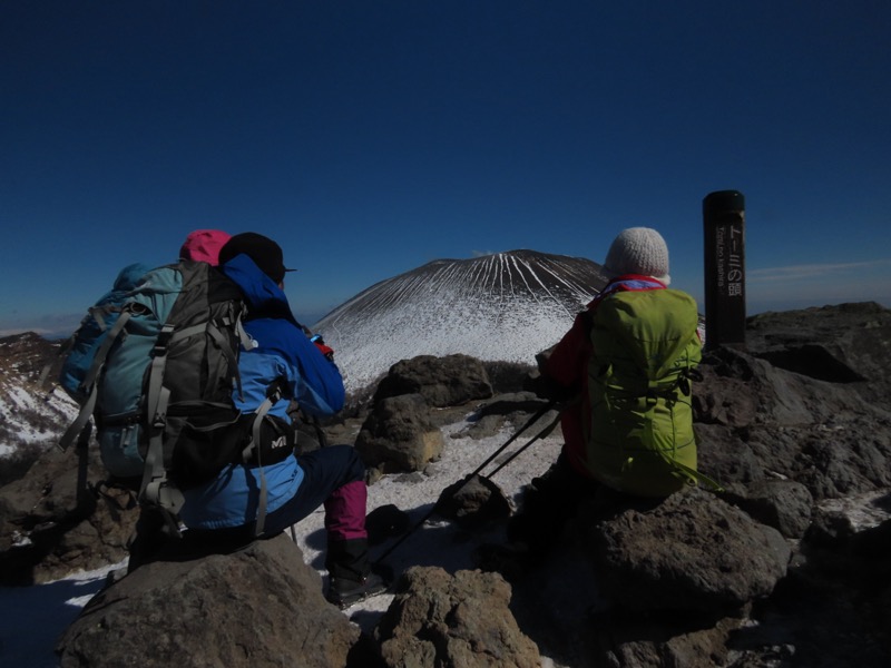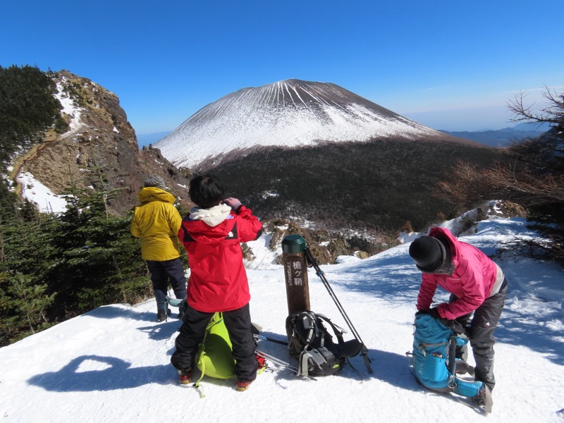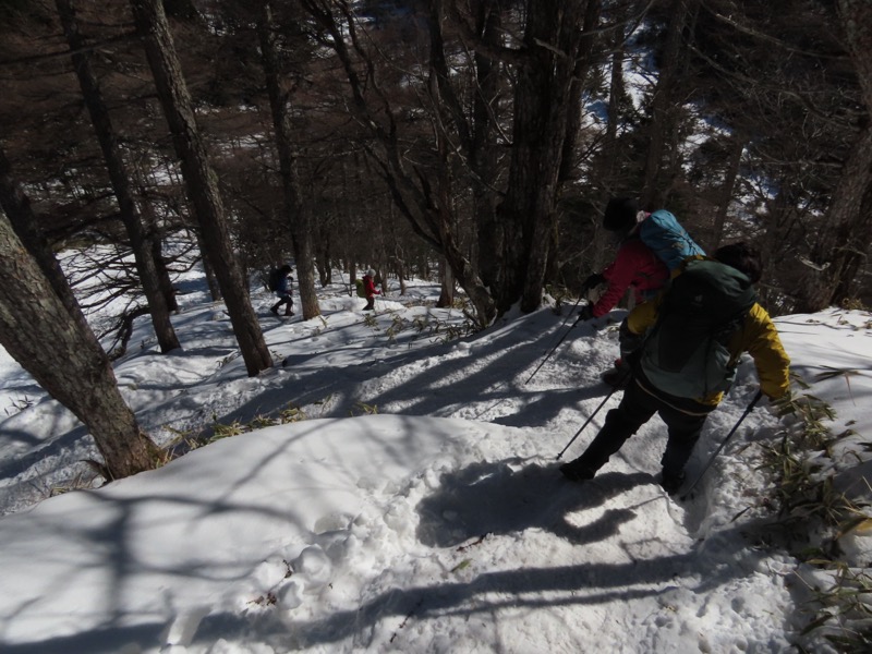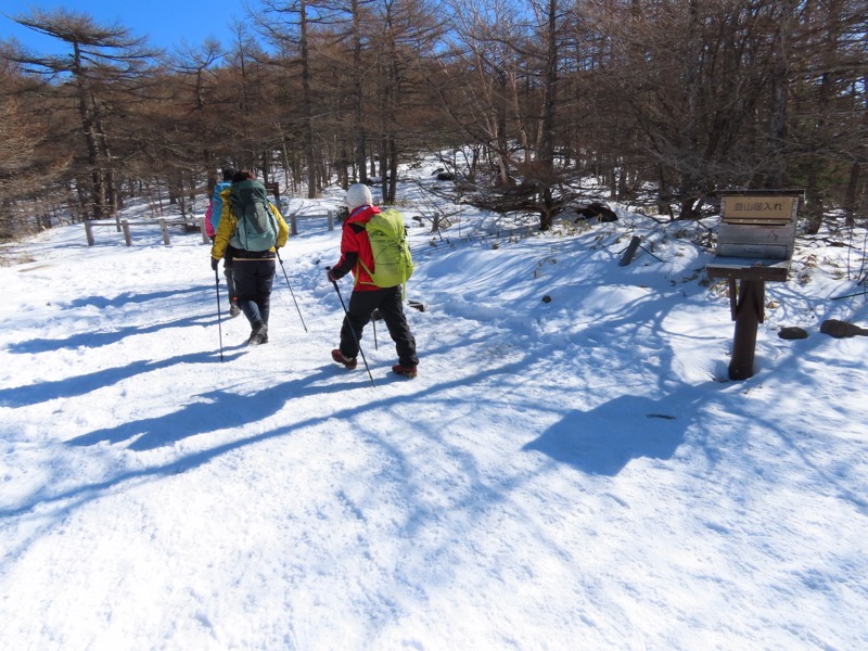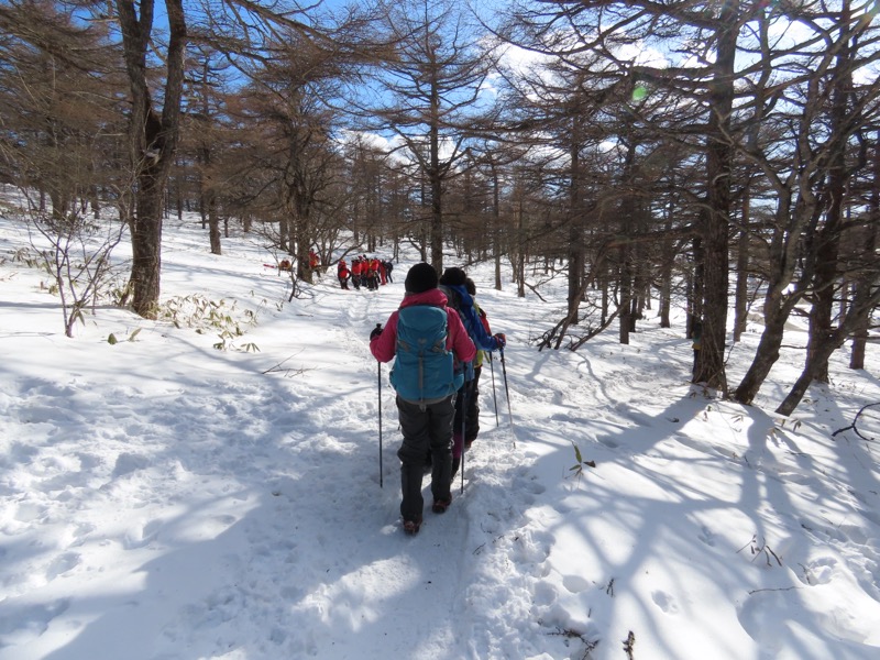 *2日目に高峰高原に上がって、ビジターセンターでスノーシューを借り(4,000円)、黒斑山(浅間山外輪山)に登ります。