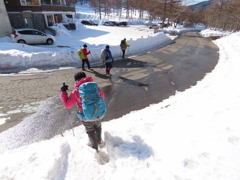 ────*バス終点の「高峰マウンテンリゾート」まで歩こうと思ったけれど、日陰の車道は凍っていて、引き換えす。