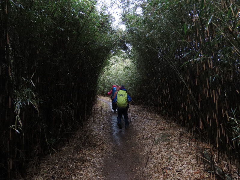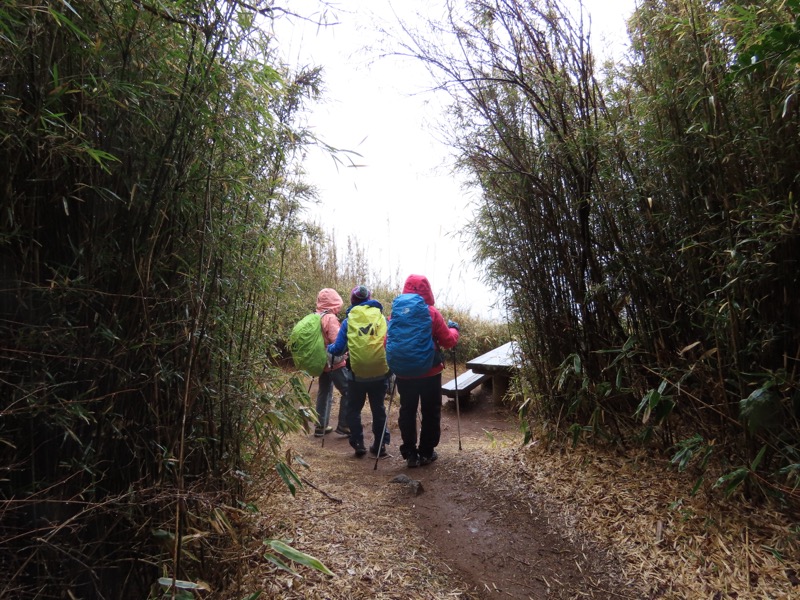 ────1050-1120ごろ_山頂駅カフェで出発準備 1120ごろ_十国峠山頂を出発(標高=771m) *山頂部には新しいドッグラン施設や、グランピング施設がひろがっていた 1140ごろ_東光寺(標高約700m) 1145ごろ_湯河原分岐(標高約700m) 1155ごろ_姫の沢公園(熱海)方面分岐(標高約700m) ────1210ごろ_「岩戸山山頂近道」と「伊豆山・七尾」方面分岐(標高約710m)