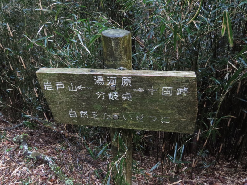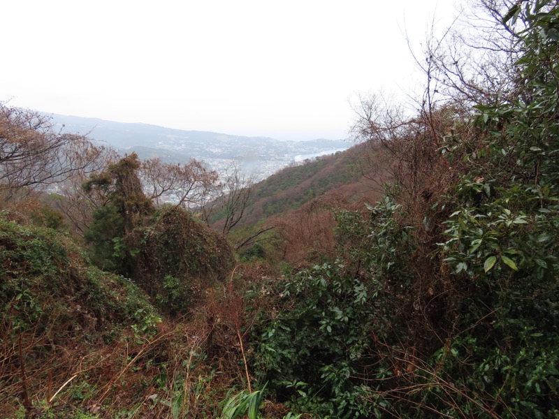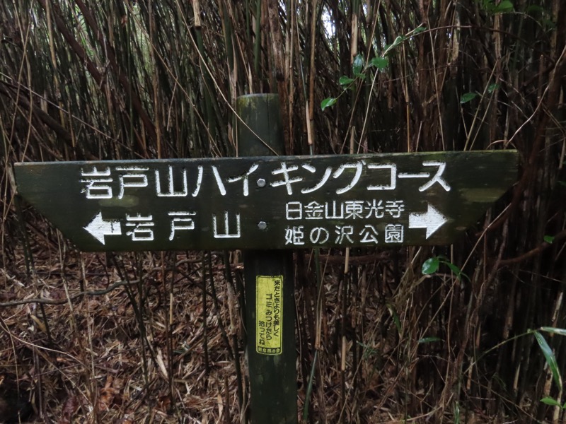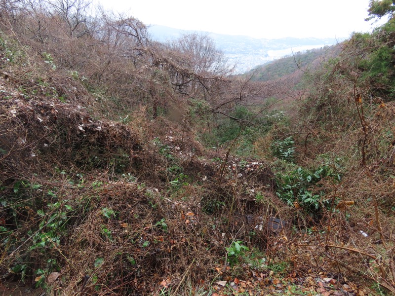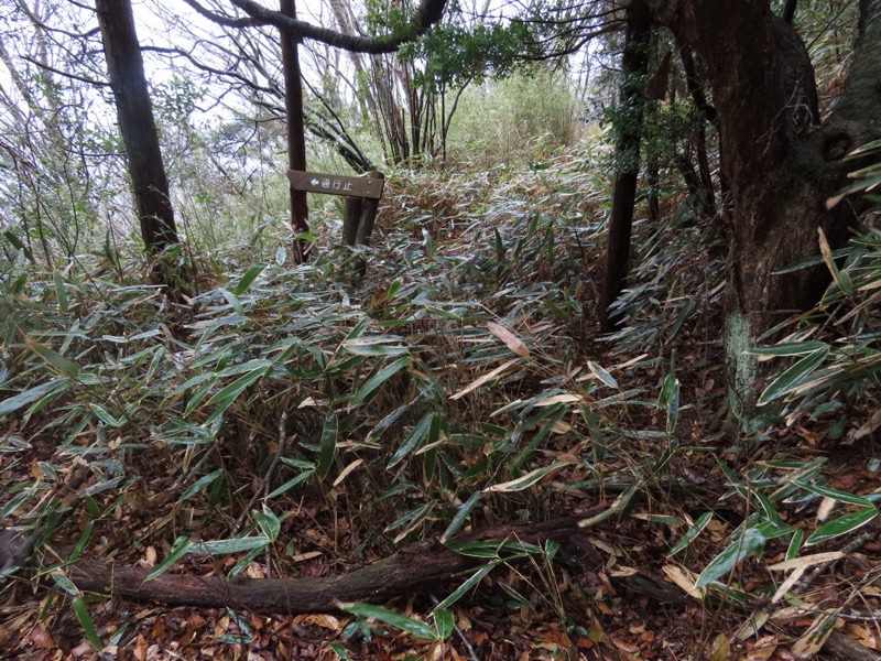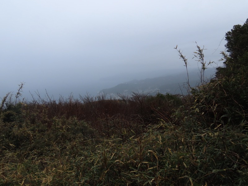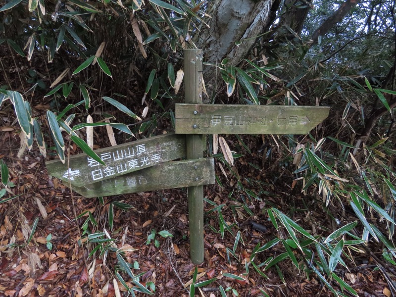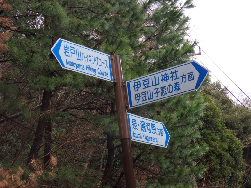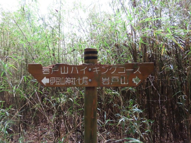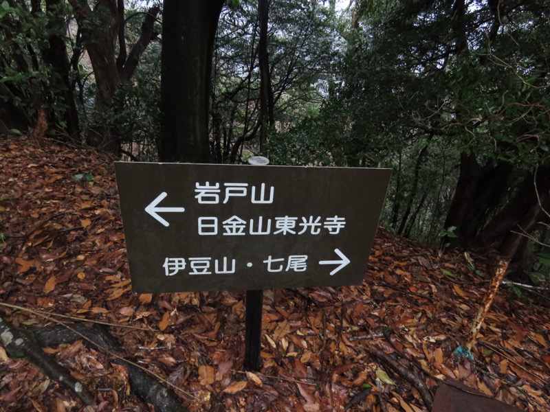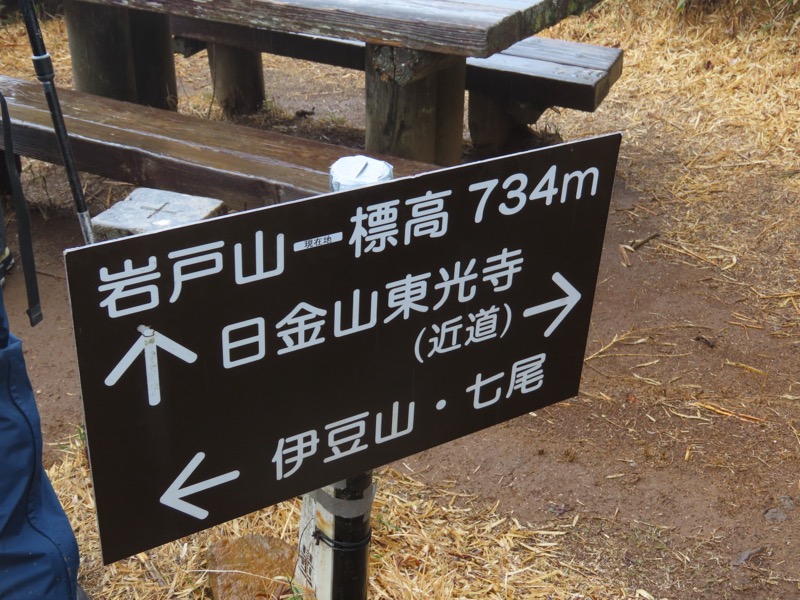 ────1155ごろ_姫の沢公園(熱海)方面分岐(標高約700m) 1210ごろ_「岩戸山山頂近道」と「伊豆山・七尾」方面分岐(標高約710m) 1215ごろ_岩戸山山頂_(標高=734m) 1230ごろ_伊豆山神社・七尾分岐(標高約630m) ────1300ごろ_自動車道路(閉鎖)に出る(標高約460m)