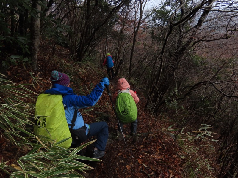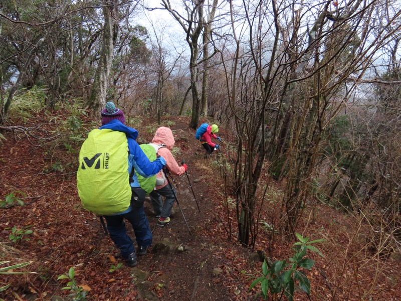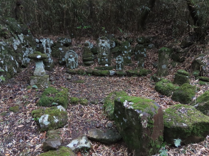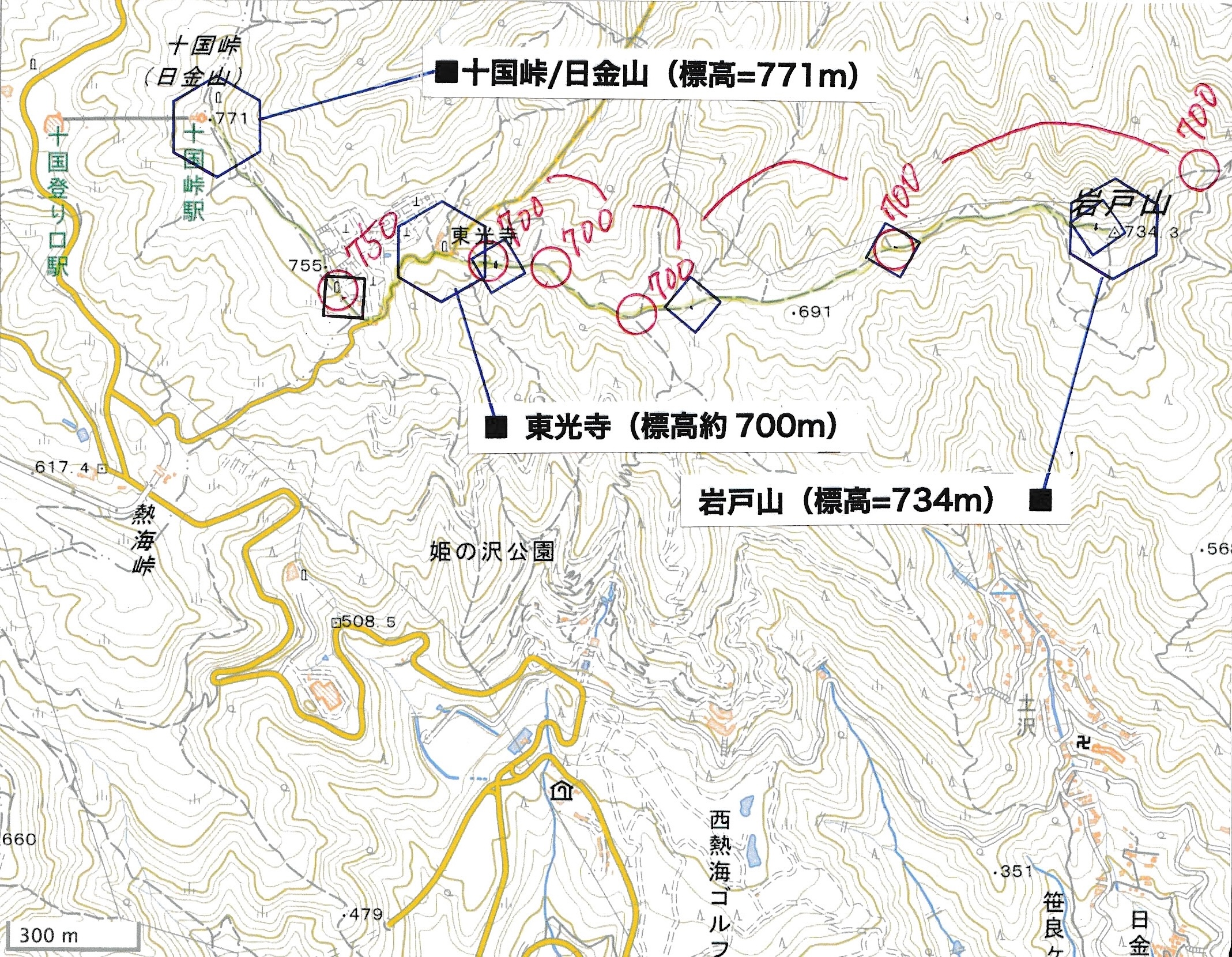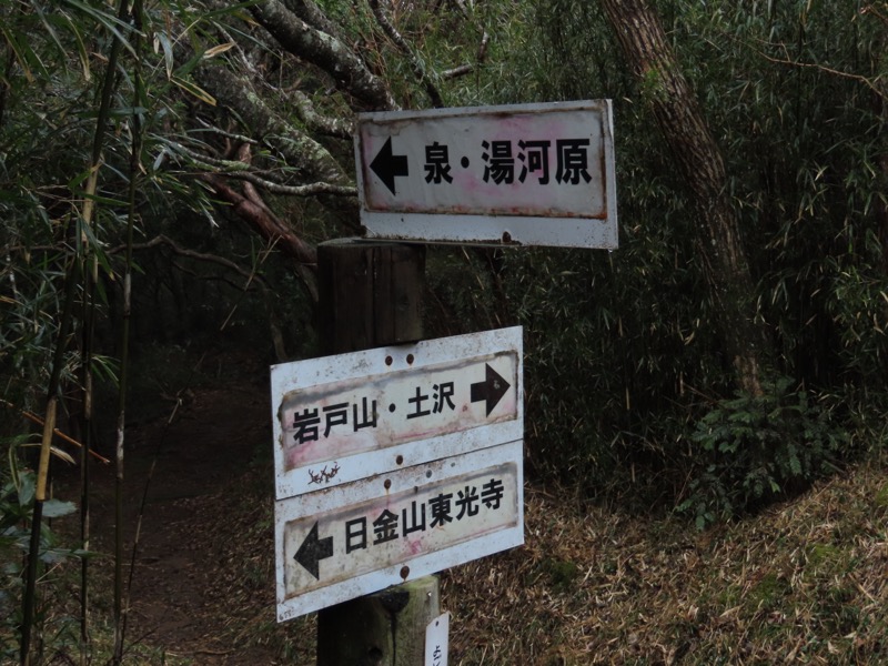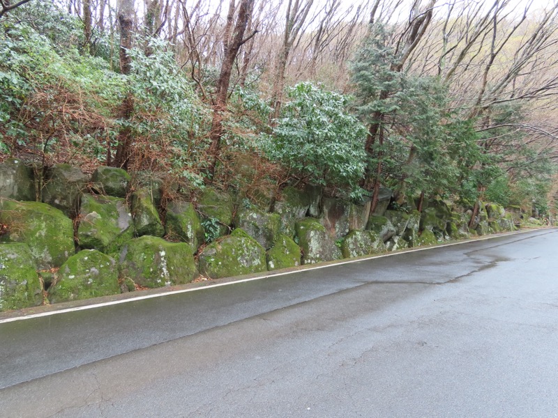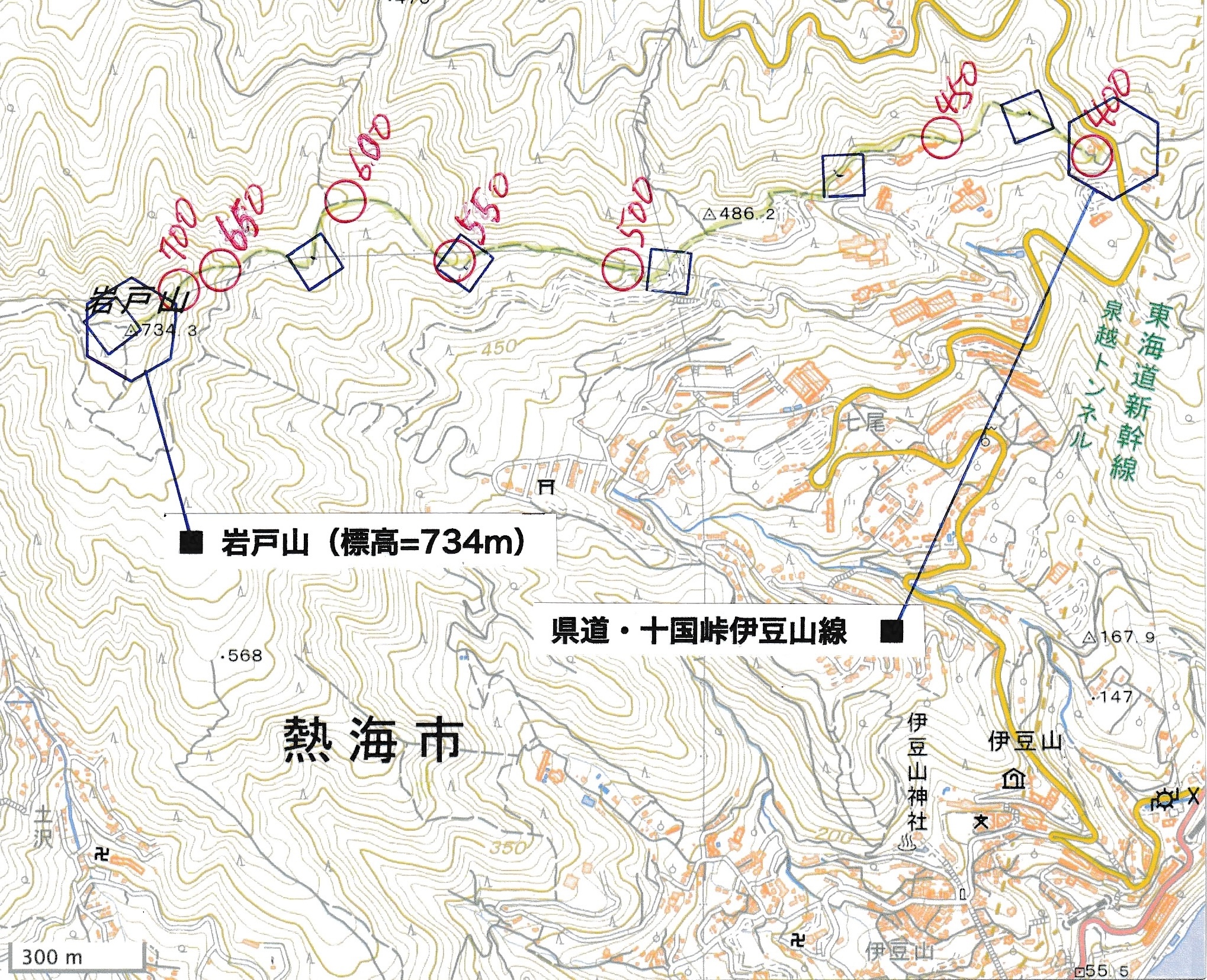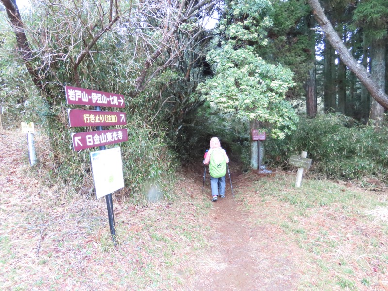 ────1155ごろ_姫の沢公園(熱海)方面分岐(標高約700m) 1210ごろ_「岩戸山山頂近道」と「伊豆山・七尾」方面分岐(標高約710m) 1215ごろ_岩戸山山頂_(標高=734m) 1230ごろ_伊豆山神社・七尾分岐(標高約630m) ────1300ごろ_自動車道路(閉鎖)に出る(標高約460m)