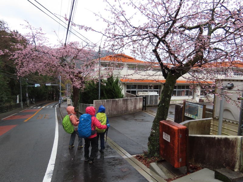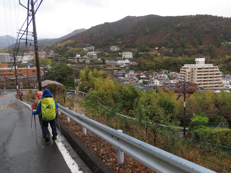 1400ごろ_県道はゆずり葉団地(ゆずり葉団地バス停)へと下った(標高約280m) 1410ごろ_熱海私立泉小学校/泉中学校(標高=179m) 1440ごろ_ホテル・ニューウェルシティ湯河原(標高約80m) *「いずみの湯」で入浴(食事は時間外) ────1625ごろ_ホテルの送迎バスで湯河原駅へ