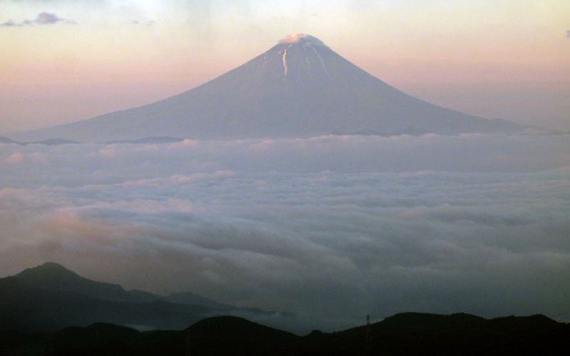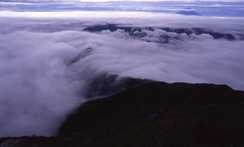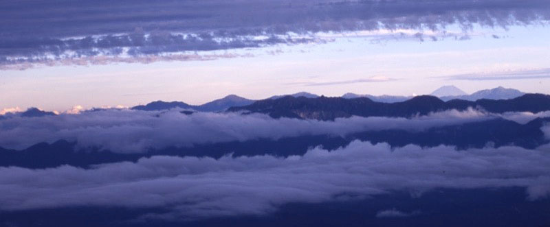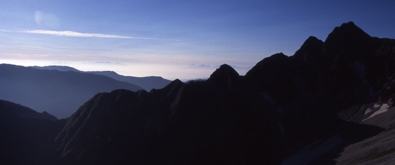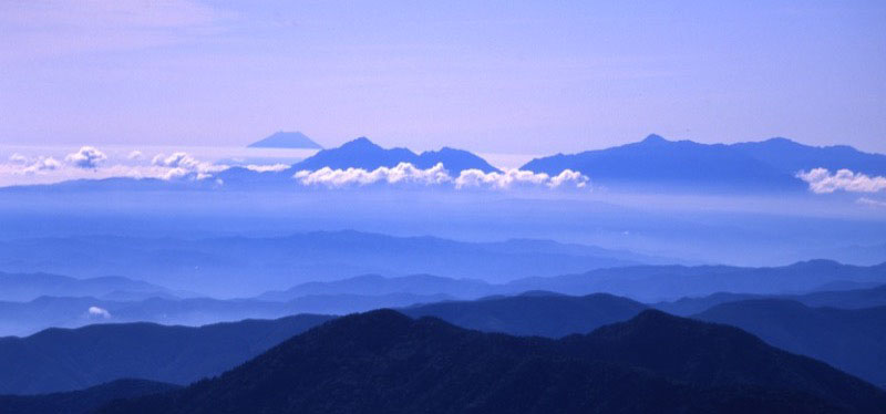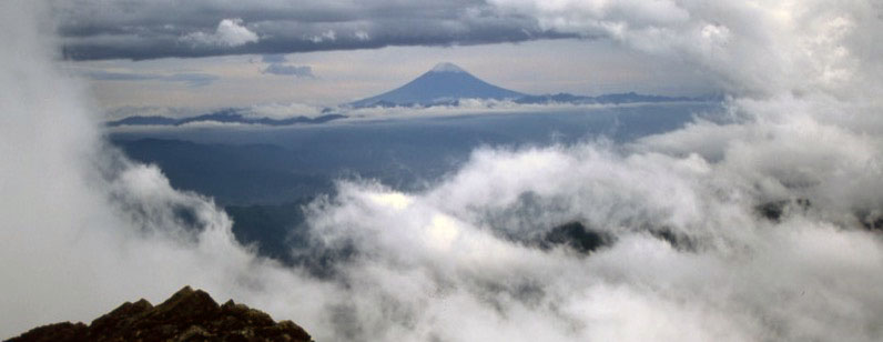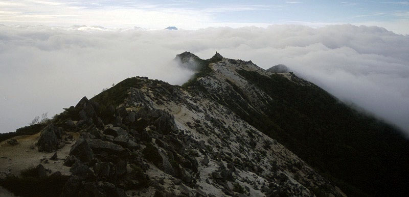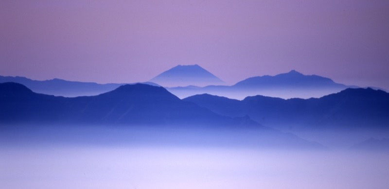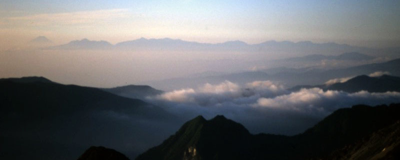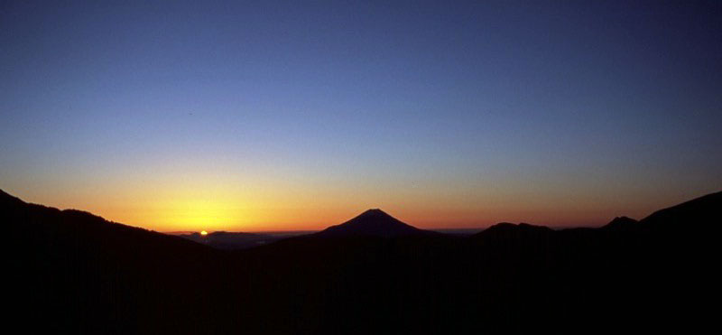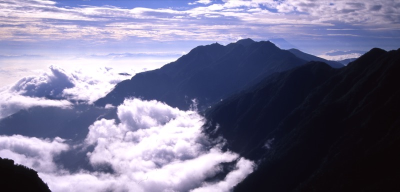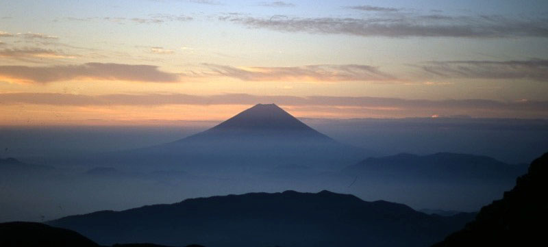 ▲「北岳〜塩見岳」の富士山=2001.8.25