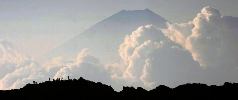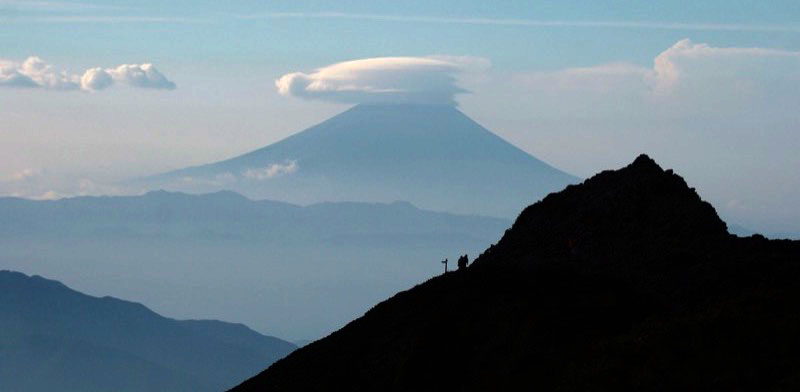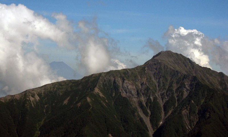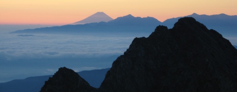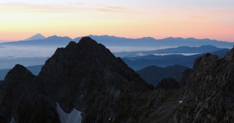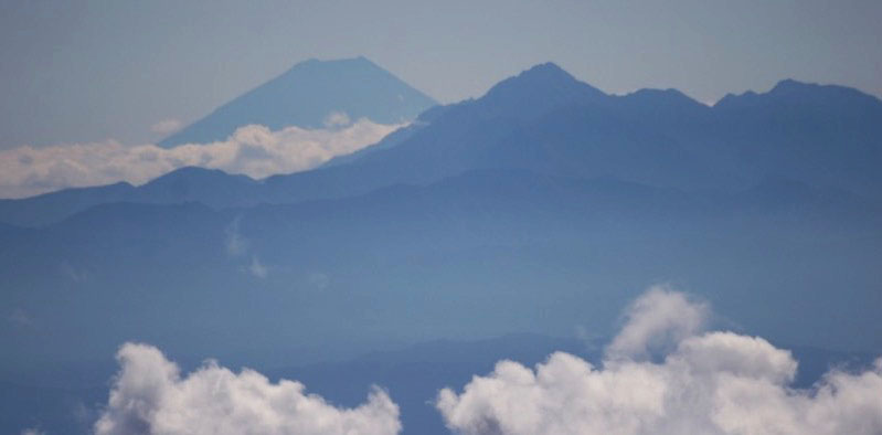 ▲「蝶ヶ岳〜常念岳」の富士山=2015.8.20