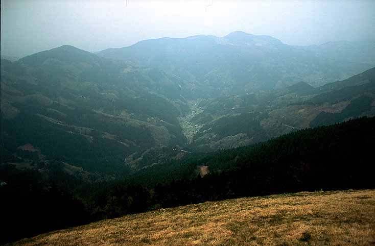 ●奥武蔵の比企三山というと、今回の笠山、堂平山に大霧山を加えます。山腹に牧場が広がるのが大霧山ですが、大霧山から見ると、山頂に国立天文台が置かれているのが堂平山、傘を広げたようなのが笠山となります。標高のわりに大柄な山々です。
