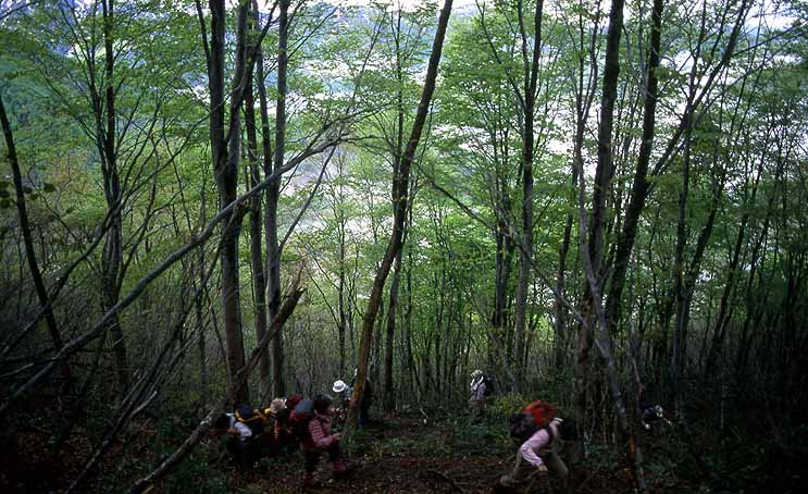 ●かなり強烈な一気登りです。が山頂手前に避難小屋がありますから、チャレンジしてだめなら待っているということが可能です。